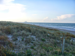 The other appliances we were missing were washer and dryer. Usually the family takes the laundry to the local laundrette for wash and fold. But I decided to save a few bucks by going there to do it myself. Not such a hardship when the beach was only a five minute walk away. Here's a photo, taken in the evening, so imagine more sunshine! In the background you can glimpse Mount Maunganui which has a sacred significance for the local Maoris and is a popular tourist attraction too.